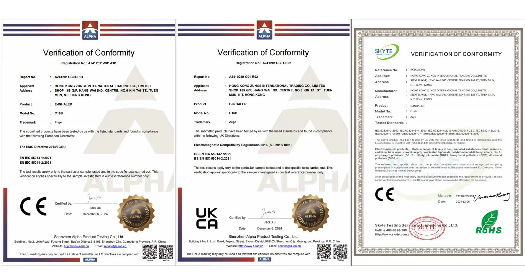 International Certification: We sent the Zuge Aromatherapy Stick to a leading EU testing agency and received CE, UKCA, and RoHS certifications, providing authoritative endorsement of its superior quality and global compliance. CE and UKCA certifications ensure its safety meets EU and UK market access requirements, while RoHS strictly limits hazardous substances and demonstrates our commitment to environmental protection. This demonstrates that our product meets international standards for safety, quality, and environmental protection.